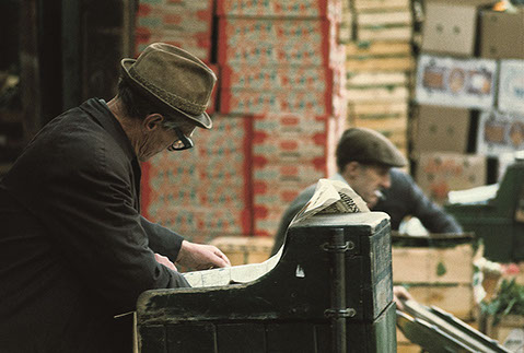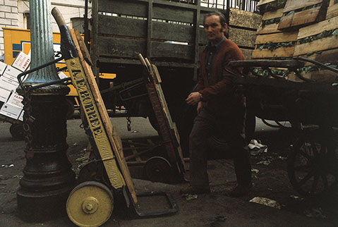 "The Museum of London is delighted to have acquired an number of prints of Nigel Dicker's excellent photographs of Covent Garden fruit, vegetable and flower market before it was relocated to Nine Elms in the early 1970's. Although the market was well documented at the time by several photographers, what distinguishes Nigel's pictures are firstly, that they were shot in colour - seemingly a real rarity for the time - and secondly, his ability to relate the place to the people who worked there. It is all to easy with a subject like this to produce a set of pictures which are either 'character' studies with little insight into who or what they do, or a dispassionate record of a work place with minimal human interest. Nigel avoided both of these pitfalls to produce a set of pictures which not only record Covent Garden Market but document what it was actually like to work there."